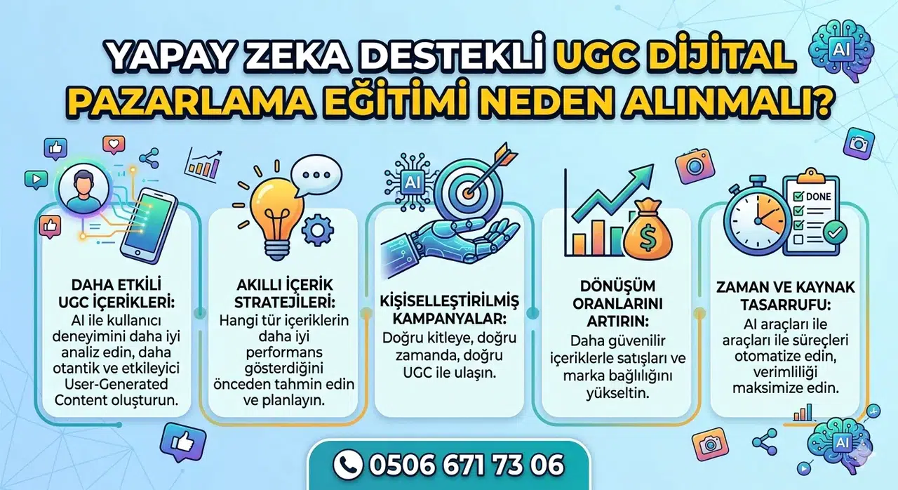 UGC Başvuru Formu için 0506 671 73 06 numaralı hattan alanında deneyimli UGC eğitimi veren SEOiçerik ailesine ulaşabilirsiniz. Peki, Yapay zeka destekli UGC eğitimi avantajları nelerdir?